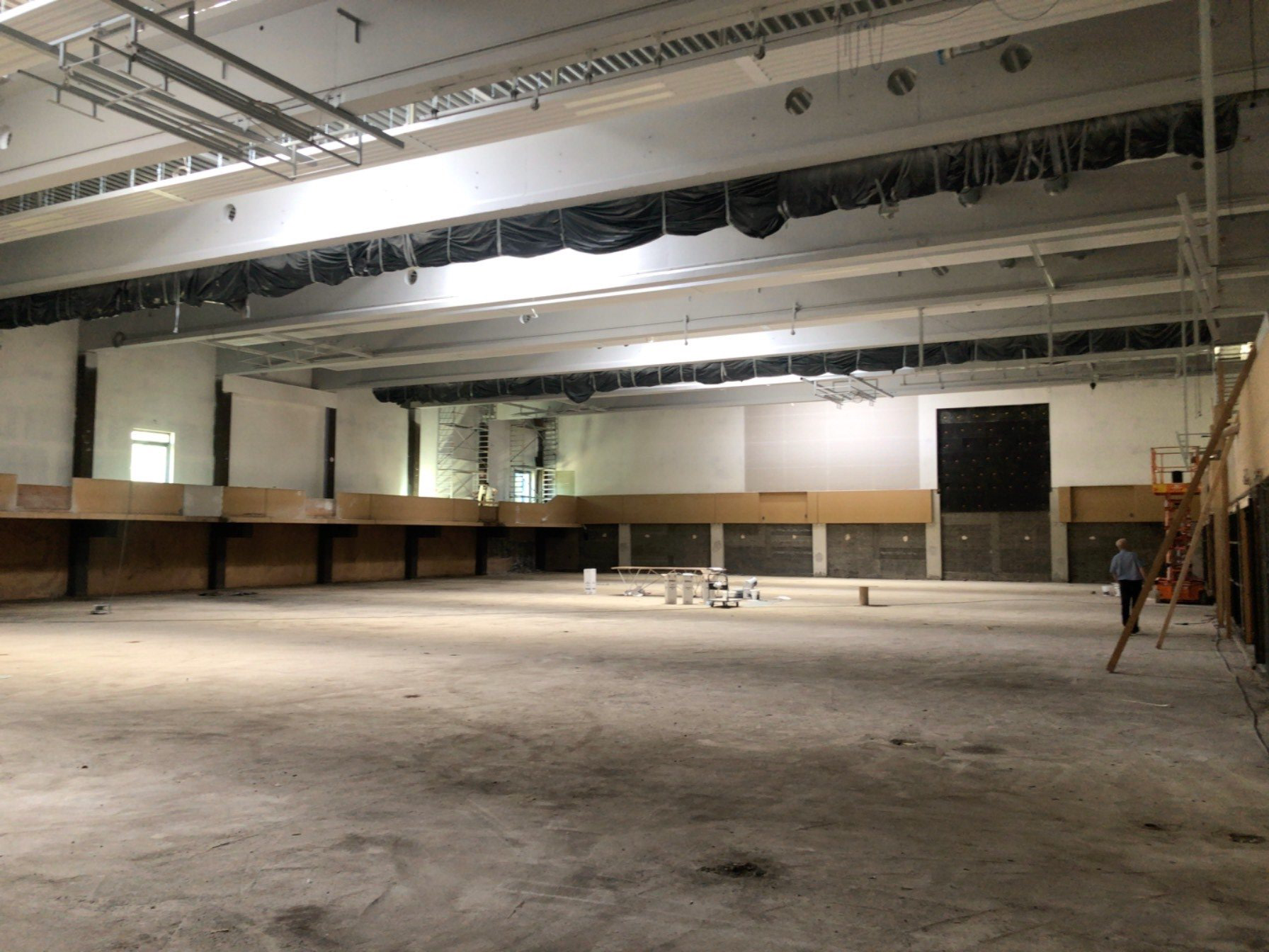 Sanierung aller Oberflächen im Sportbereich, Sanitär- bzw. Nebenraumbereich.
