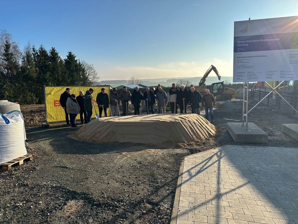 Am 15. Dezember 2025 fand der feierliche Spatenstich für den Neubau der katholischen Kindertagesstätte in Kirchberg statt. Die Veranstaltung stellte den feierlichen Startschuss für den Bau dieses bedeutenden Projekts zur Weiterentwicklung der örtlichen Kinderbetreuung dar. Zahlreiche Vertreterinnen und Vertreter aus Politik und Verwaltung nahmen daran teil, darunter auch Peter Müller, Bürgermeister der Verbandsgemeinde Kirchberg und Verbandsvorsteher des KiTa-Zweckverbandes VG Kirchberg. In seiner Rede hob er hervor, dass mit dem Baubeginn ein wichtiges Signal für die Zukunft der Kinder, junger Familien und der gesamten Region gesetzt werde. Die neue Kindertagesstätte wird in der Gänsacker 10, 55481 Kirchberg errichtet und bietet Platz für insgesamt vier Gruppen.